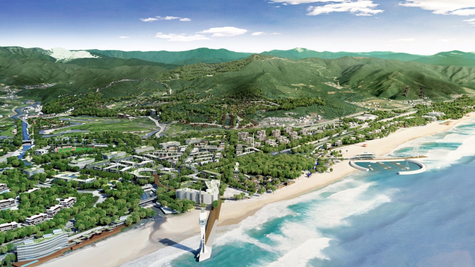 Nested in a remarkable environment on the coastal region of the territory of Gangwon Province, the 639 hectare resort will propose an unparalleled array of experiential and commercial amenities where Korean culture will meet with other cultures. Gathering a total of 564 buildings including 6 hotels, 4970 residential units and 135 000 m2 of commercial activities, Mangsang Resort City is designed as a place to play, to live, to learn and to work.