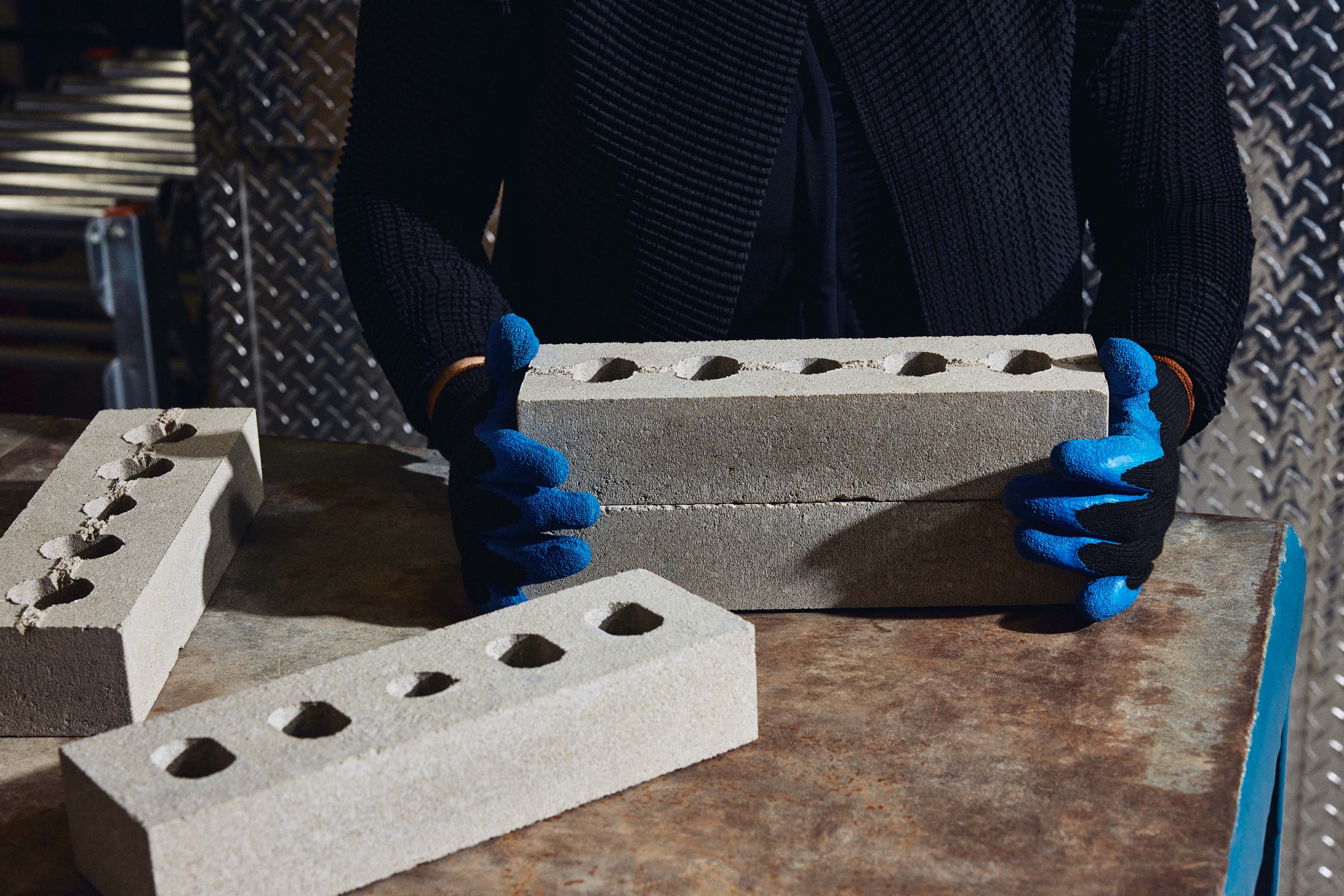 Après deux ans de recherches, la brique de béton DUAL affiche une réduction de l’utilisation de matières de près d’un tiers par rapport à une brique de béton traditionnelle pleine – un chiffre obtenu par la création d’alvéoles au sein d’un design innovant. La fiche environnementale (DEP) certifiée qui l’accompagne atteste d’une diminution de plus de 20 % des émissions de carbone sur l’ensemble de son cycle de vie grâce à l’intégration de matériaux recyclés dans sa composition.