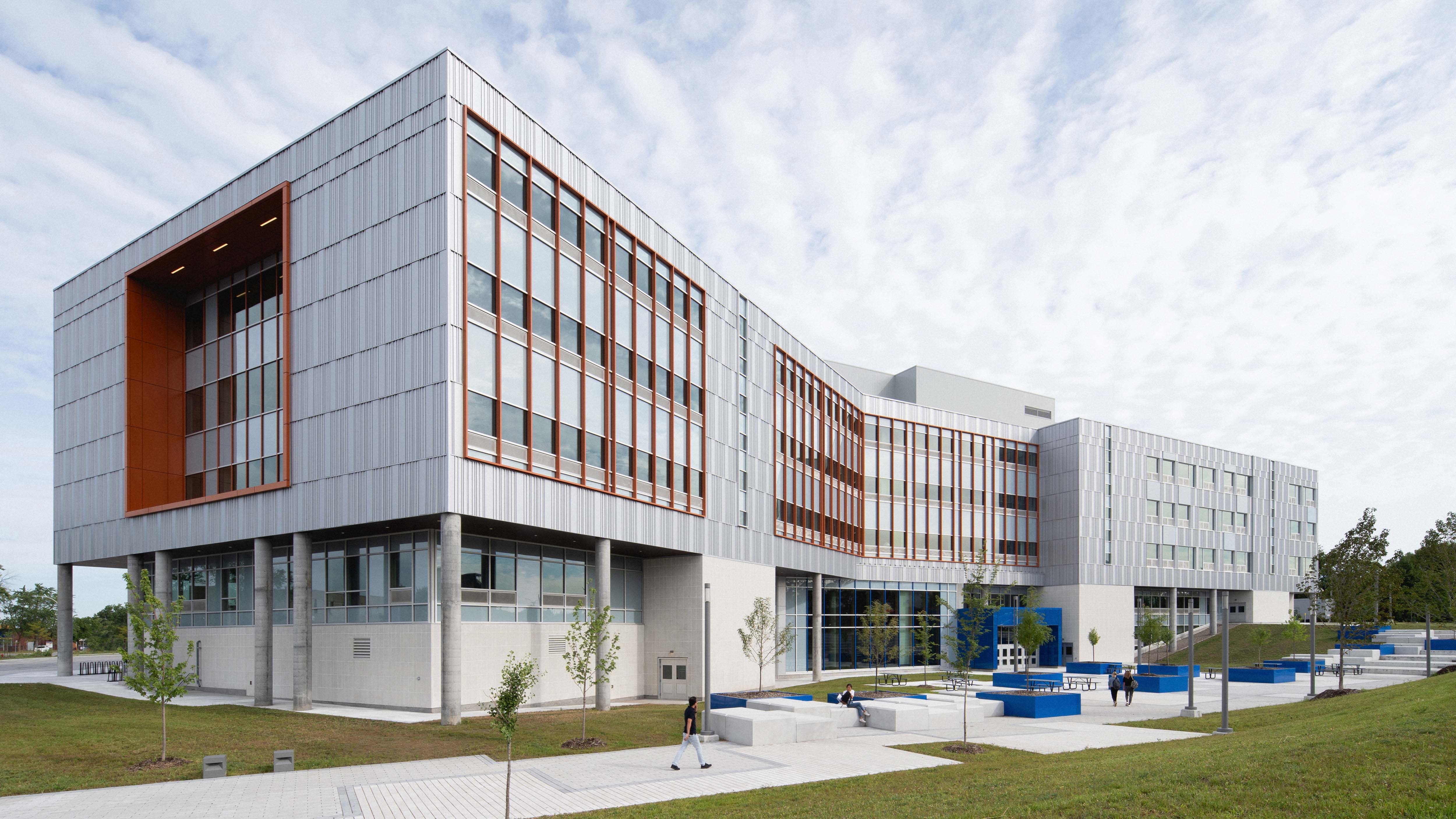 Un érable noir est planté au cœur du bâtiment, en complément aux arbres ajoutés et préservés au sein des aménagements paysagers. Cet arbre met en avant la dimension durable du projet, et s'associe à un ensemble de dispositifs environnementaux. Pavements de béton recyclé, toitures vertes et blanches, système de géothermie, colonnes et revêtements de bois, mais aussi escaliers actifs, stations de tri de déchets et bornes de recharge électrique contribuent quotidiennement à l'économie d’énergie, et assurent un cycle de vie de plus de 75 ans à la construction, tout en satisfaisant aux exigences de la certification LEED Argent.