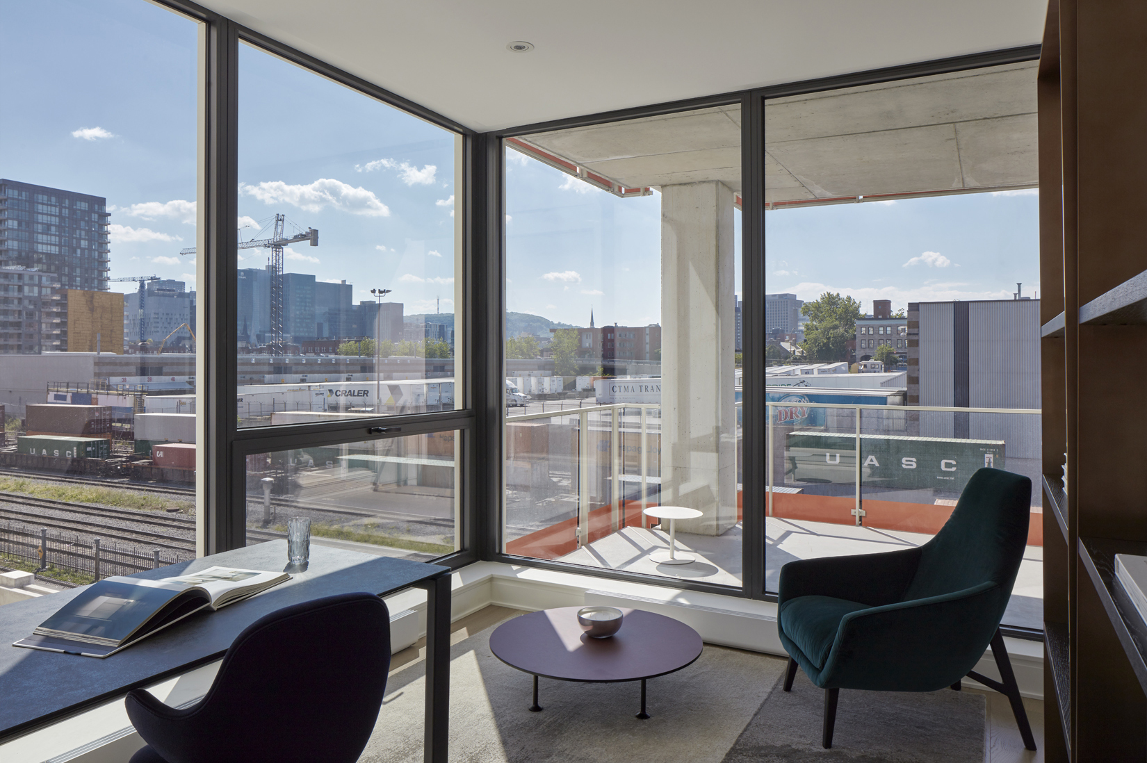 Avec leurs vastes baies vitrées et leurs loggias privées, les appartements bénéficient tous de cadrages imprenables sur la métropole. La simplicité des aménagements et l'aspect brut des finitions et mises en œuvre mettent en valeur l'espace et à la lumière.